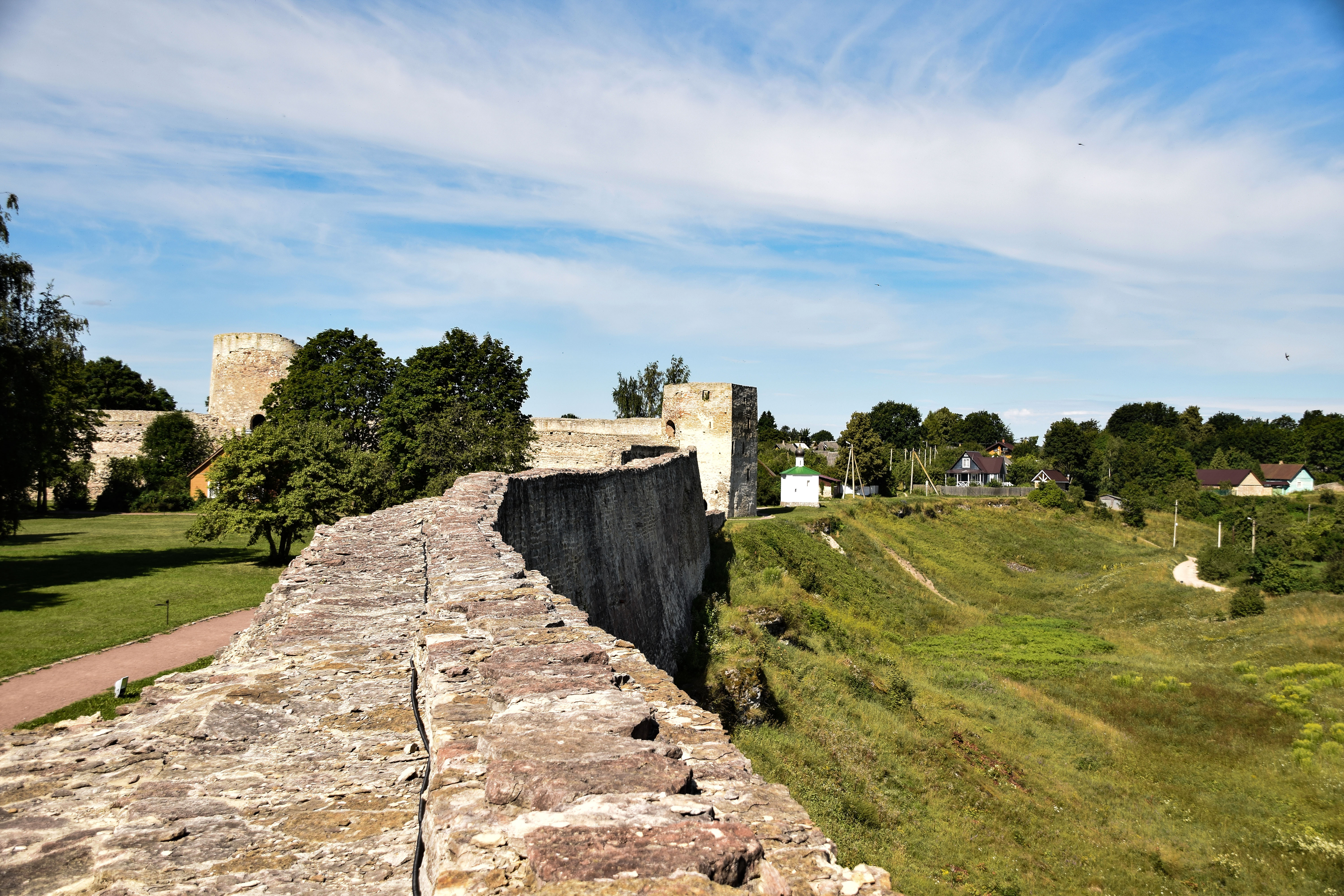Кроме Псковского кремля, в Псковской области не менее интересна Изборская крепость – образец древнерусского каменного зодчества. Ее могучие стены и башни помнят осаду Ливонского ордена, войска Стефана Батория, эпоху Смутного времени и Северных войн. Высота крепостных стен Изборска доходит до 10 метров, башен — почти до 20. Изборская крепость входит в состав музея-заповедника и открыта для туристов. Вы сможете прогуляться по пряслам стен, сфотографировать Изборск с высоты смотровых площадок, заглянуть в древние башни.